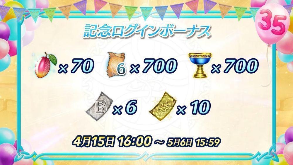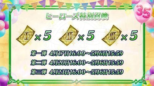 只要在活动期间内登入,就能获得一系列报酬。赠送的召唤券能用在保证召唤★4 特别机会,以及保证召唤超★4 特别机会。