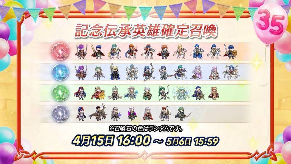 在这个召唤活动,可以从至今为止于召唤活动登场的《火焰纹章》歷代男杰和女杰的传承英雄之中,保证召唤一位英雄成为伙伴。
