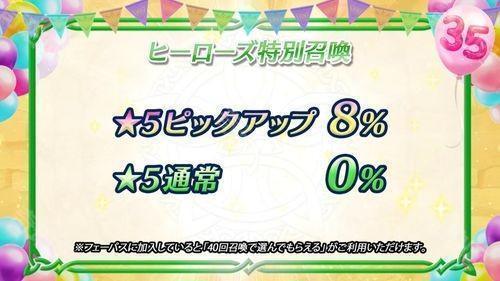 Heroes 特别召唤的★5 精选英雄出现机率为 8%。只要在活动期间内登入, 就能获得可在 Heroes 特别召唤活动使用的召唤券。