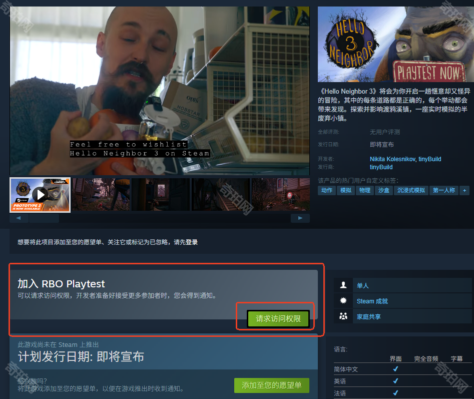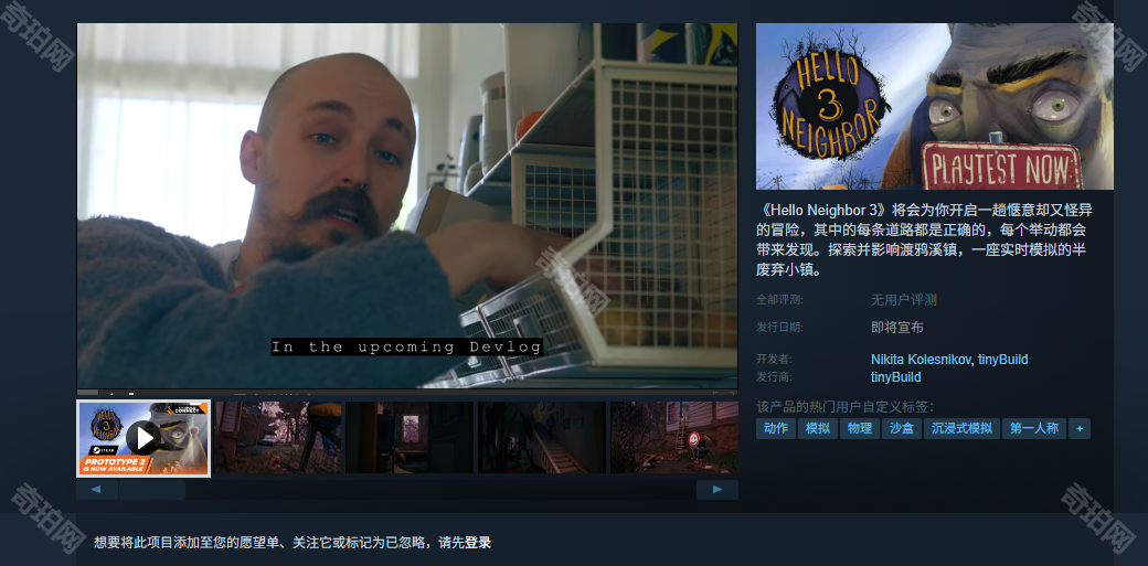 游戏Steam商店页面:https://store.steampowered.com/app/2789680/Hello_Neighbor_3/