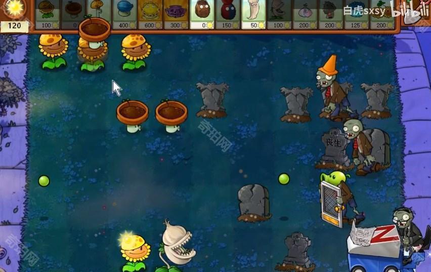 2、前面种植大蒜花来阻拦僵尸,后面僵尸快到门口了赶紧放一个坚果阻拦。