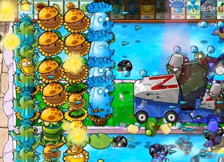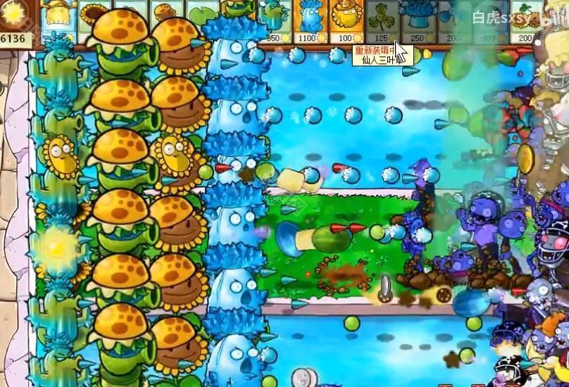 4、能量差不多后就可以将向日葵替换成为汉堡射手,前面放满高冰果。