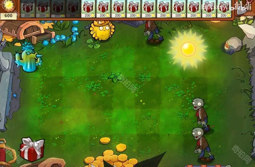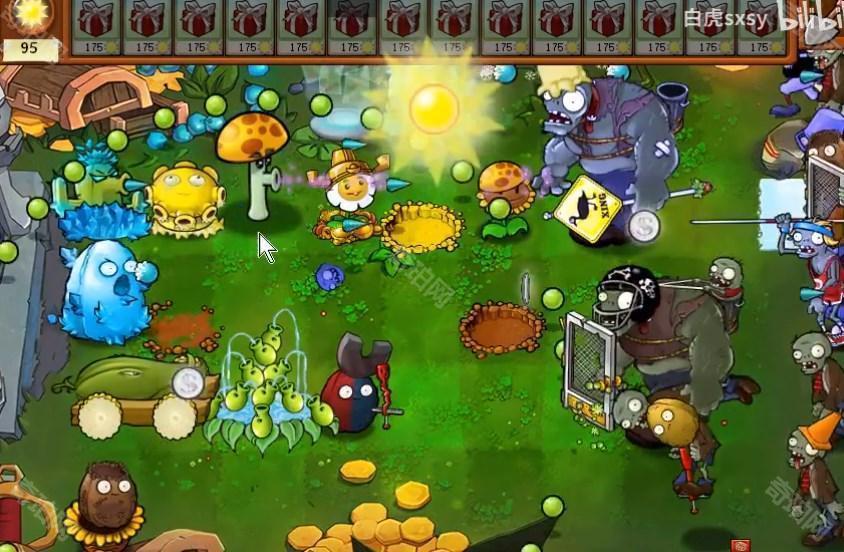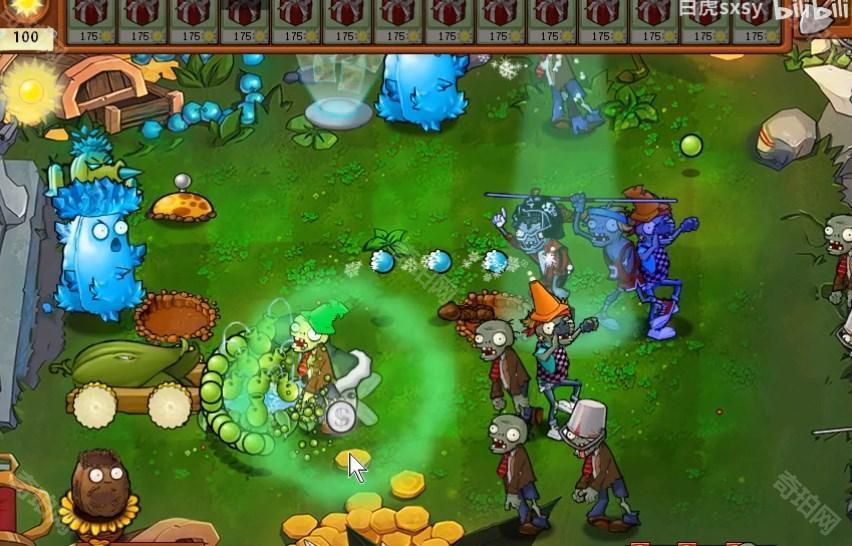 3、争取每排都放置一些植物,不要漏掉了僵尸。