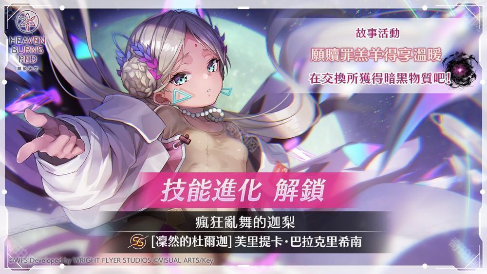 Wright Flyer Studios × Key 戏剧性 RPG《绯染天空 Heaven Burns Red》于近日举办玛丽亚・黛・安杰利斯会有活跃表现的故事活动「愿赎罪羔羊得享温暖」。同时间举办 SS 玛丽亚/艾琳登场的「精选白金战型探索」、最多可获得 3000 个石英的登入奖励「新生活应援特别活动」。