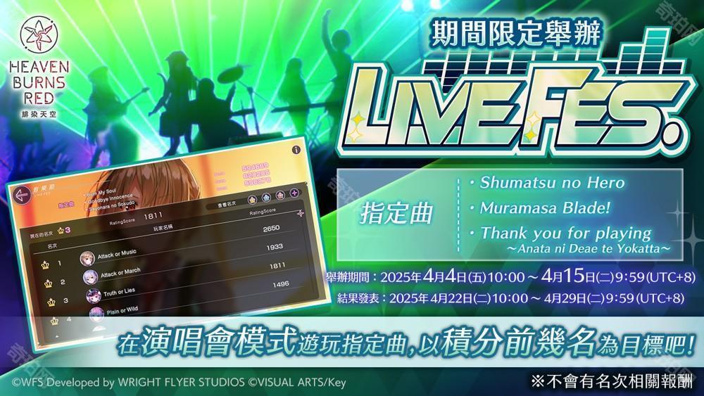 举办「LIVE FES.」!在演唱会模式以积分前几名为目标吧!
