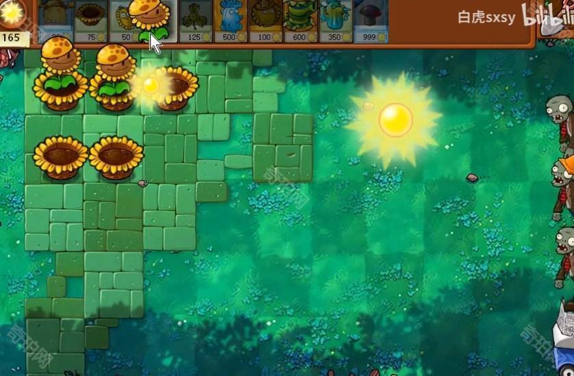 4、阳光充足以后就向日葵慢慢换成汉堡射手,用来攻击僵尸。