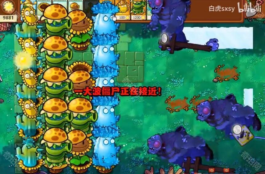 3、最后一排全部换成寒冰仙人掌,然后在仙人掌头顶放阳光豆。