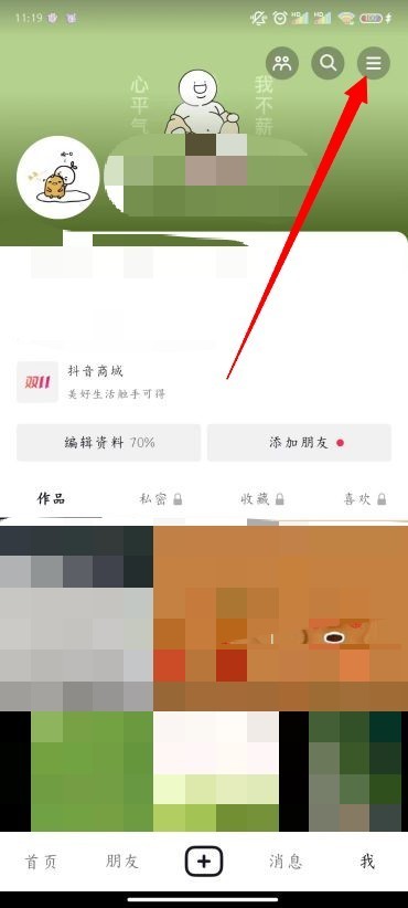 2、进到本人页面随后在点击右上方的三。