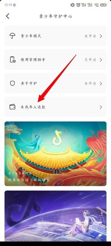 4、点击未成年人退款。