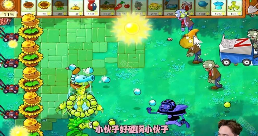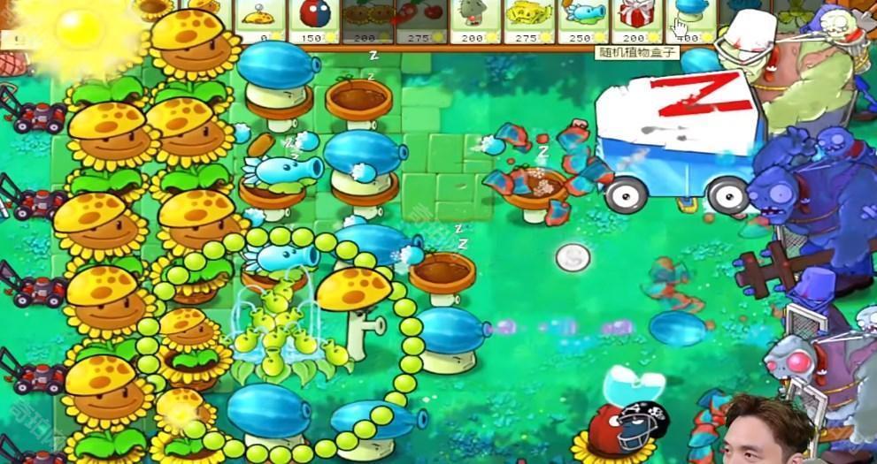 3、冰车僵尸出现,及时放冰瓜大喷菇,这个伤害比较高,可以及时打。