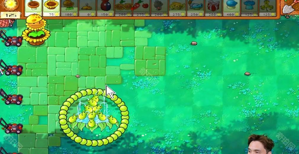 2、最下一排钢盔僵尸比较难打,放一个机关枪豌豆去打破他的钢盔。
