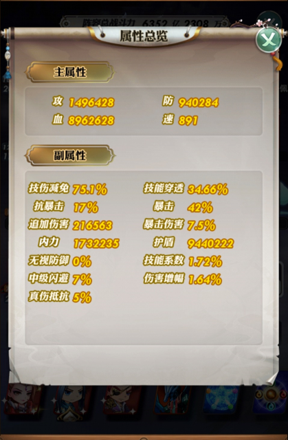 内力:可减少非真伤的技能伤害。
