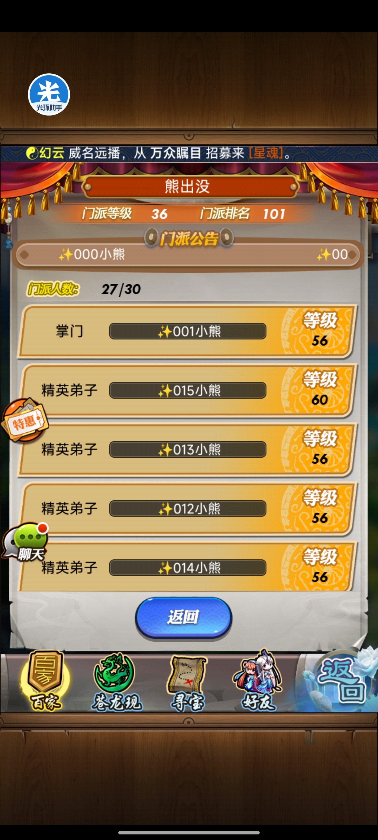 庄园同样是两部分。大厅的任务随机每次30元宝,拜访好友那边概率10元宝每天上限10次。我不推荐大家刷新庄园去刷出聚神印记和元宝,因为根据一些玩家实测你刷新消耗的是肯定大于刷出来的价值。