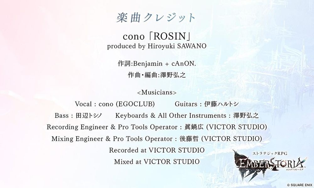 SQUARE ENIX 于2024年11月22日宣布,移动及PC端专用的完全新作策略 RPG《Emberstoria》决定于 2024 年 11 月 27 日(四)正式在日本开始服务。另外,使用了泽野弘之创作乐曲「ROSIN」的最终预告影片同步公开。