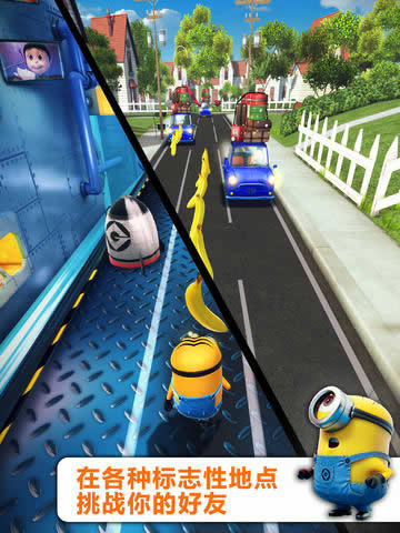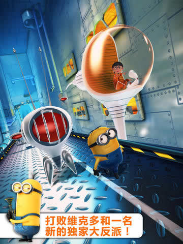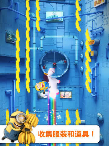 神秘的区域,独特的反派战斗以及惊艳的道具让你爱不释手。感受为游戏专门打造的动画和配音,以及最先进的3D画面。变身百万小小兵摧毁一切,骑着毛毛独角兽收集香蕉,驾驶格鲁的火箭开始你的亡命之旅吧!