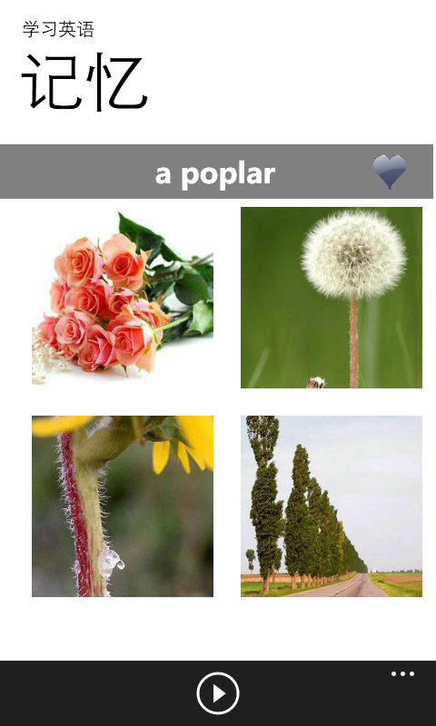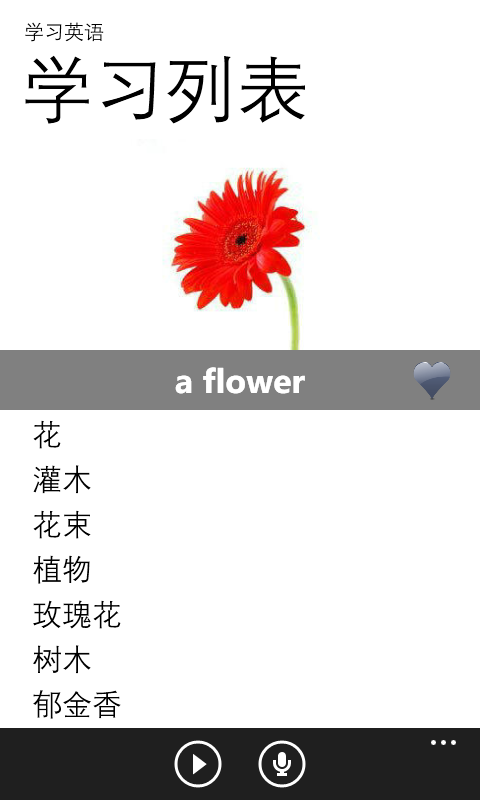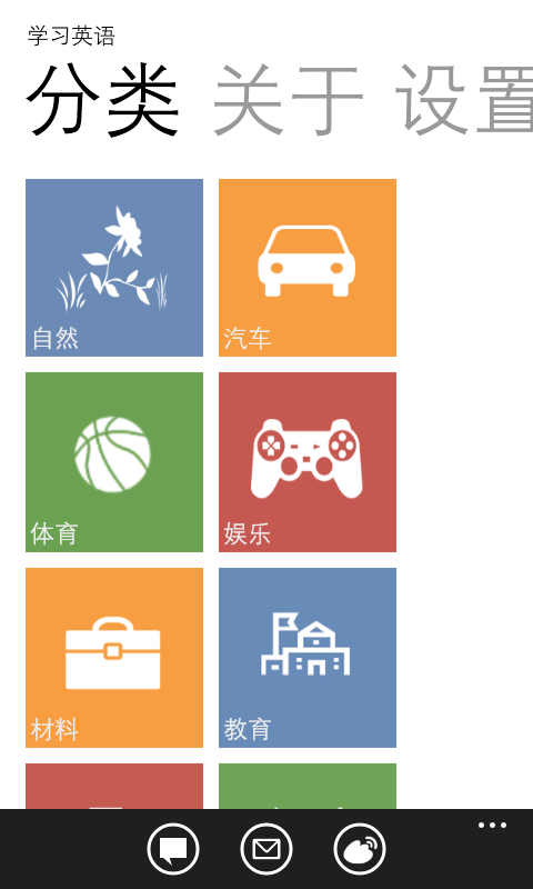 《学习英语》(Learn English)提供了大量的单词库,而且还包含语音和图片,分成24个类别,包括: