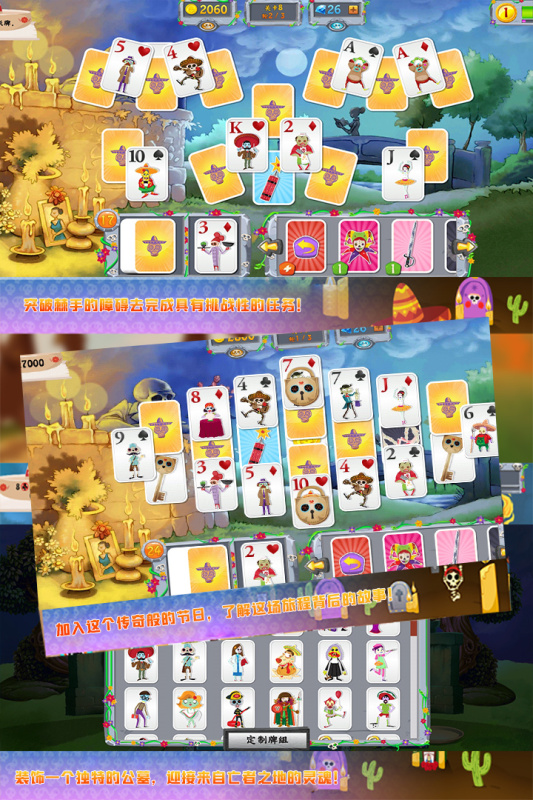 亡灵节现在开始了,准备好迎接这个全新的纸牌冒险了嘛?在这个节日踏上一场奇妙的旅程,在完成任务消除纸牌的同时来寻找失落的亡灵纸牌。跟随镜头加入这个传奇般的节日,在有趣的对话中了解这场旅程背后的故事,运用纸牌的魔力迎接这次奇妙的节日。