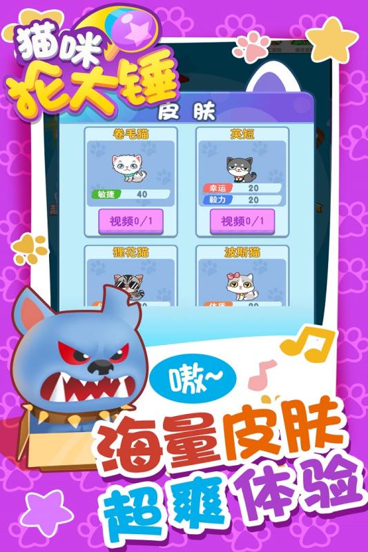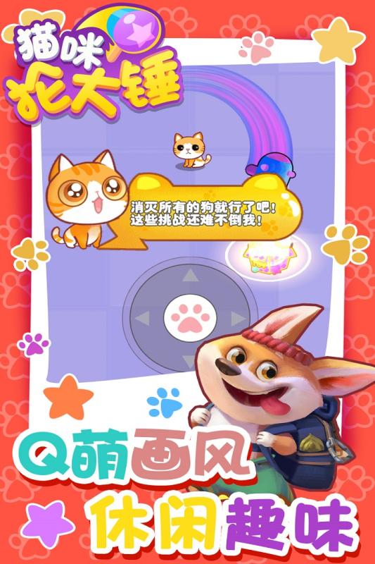 《猫咪抡大锤》是一款超新颖的新生代休闲冒险小游戏,玩家需要控制各种可爱的猫咪消灭他们的宿敌狗狗。更有强力技能,数十种特色武器!丰富的关卡道具,强力的剧情boss,更有超长剧情供你体验,快来试试吧!!