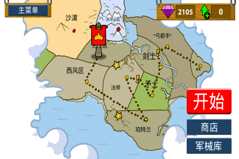 1、培养火柴人小兵,升级武器装备,搭建兵种组合消灭敌军;
