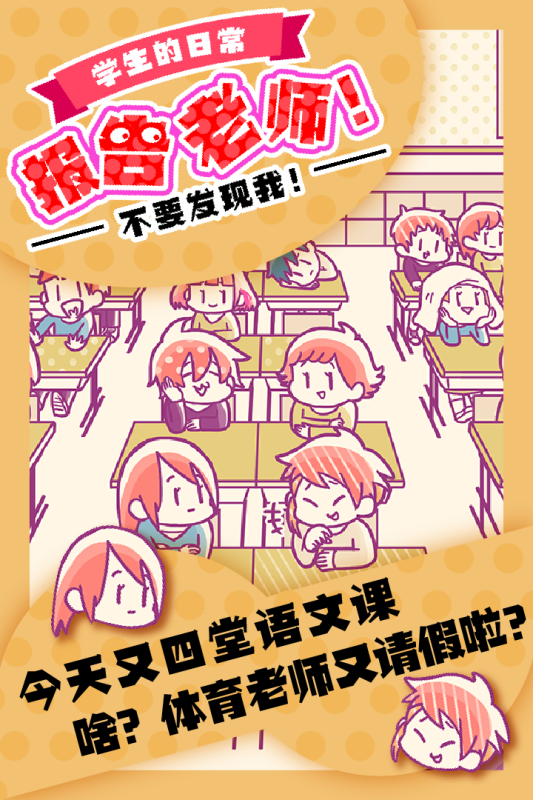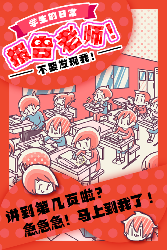 《报告老师》一款有趣味找问题游戏,游戏采用漫画风格设计打造,带玩家们返回到小学时代。玩家们需要在游戏中找到那些没有认真听讲的同学们(看漫画,化妆,吃泡面……各类奇葩应有尽有,只是他们真的很会隐藏),注意细心地进行观察,然后报告给老师,让同学们在以后的课堂上都认真听讲成为学霸考上名牌学校走上人生巅峰。