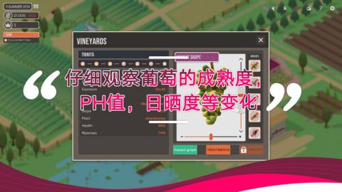 《Hundred Days》(酿造物语)是一款由意大利独立游戏开发团队研发的真实还原模拟经营葡萄酒庄园的游戏。 在游戏中,玩家会学习到葡萄酒酿造的全过程,从选择葡萄和葡萄藤品种,到给葡萄剪枝,再到压皮、发酵、在橡木桶熟成、过滤,最后到装瓶、贴标签并拿到市场上售卖。你的每一个决定都将影响到葡萄酒的最终口感和品质。