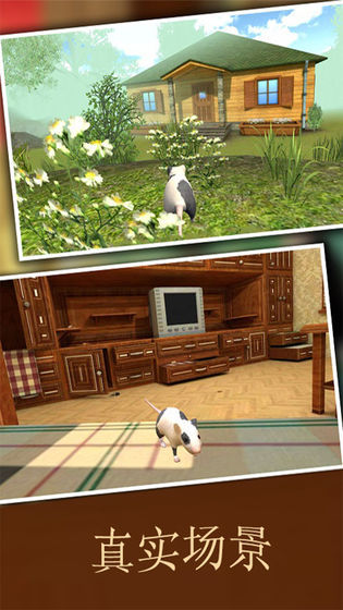 老鼠生存守则 当一只无忧无虑的小老鼠吧! 位置。 巨大的森林和小屋。你可以住在森林或小屋的幽静洞穴里。在小屋里,你必须表现出你所有的敏捷性,爬上织物表面,从架子跳到架子,从家具跳到家具。 配偶。 在10级,你可以找到配偶。和你的伴侣一起散步,提高她的情绪,你的配偶会帮助收集资源。 孩子 在20级,你可以生个孩子。喂饱它,然后教他独立的生活,展示这个世界是如何运作的。在那之后,他会和你呆一段时间,然后去建立自己的家庭! 寻找 收集和窃取资源。19种不同的资源。收集森林资源-坚果,浆果,树枝,蘑菇,干草,(不要尝试吃金刚砂) 或者从农舍里的人那里偷来奶酪、面包、猫食、硬币、手帕、史波恩、玩具、戒指、纸、线什么都可以!