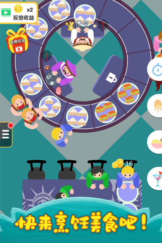 -手指点击屏幕,升级你的大厨、菜品、餐厅装修、上菜速度等等,即可赚更多金币。存够足够多的金币,就可以开下一家新餐厅,接受下一关卡的新挑战啦。