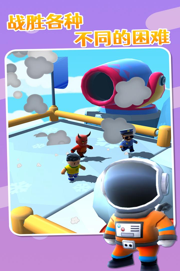糖豆人大冲关是一款大型多人在线派对淘汰赛游戏,在线多达32位玩家打算在一个又一个级别的混乱升级中挣扎,直到剩下一个胜利者!如果跌倒,请重新开始并运行。加入无尽的跑步乐趣!加入一系列荒谬的挑战和奇异的障碍,打败您的竞争对手并克服一切以赢取胜利!那么,您准备好彻底清除掉吗?