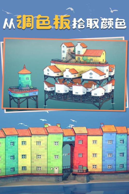 3.全新的播放内容在这里上演。玩家可以进行非凡的创新,用不同颜色的房子创造出奇妙的效果。