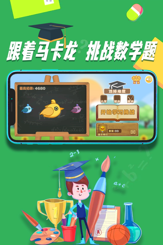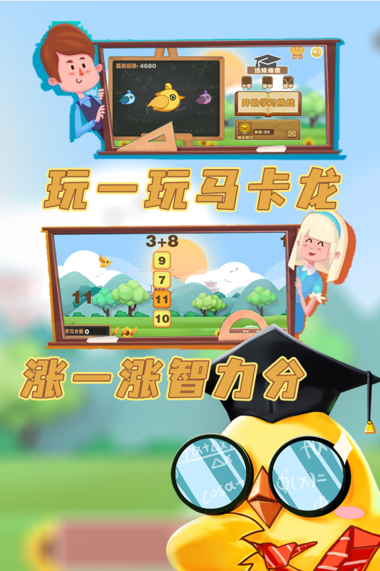 《马卡龙奇幻冒险》是一款结合了数学计算和闯关挑战的手机游戏,玩家在游戏只需操作可爱小鸟在不同的场景下进行数学题的计算,从前方障碍物上的数字中找到正确的答案,并控制自己小鸟撞击对应的数字砖块,才能继续前进。