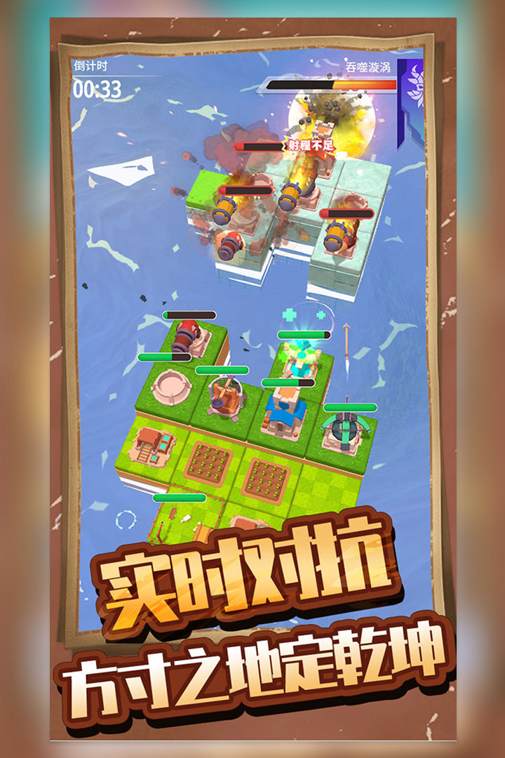 浮岛大决战是一款玩家通过对自己的所有领地进行武器装备的编排布局,与对手实时展开战斗的游戏。在浮岛大决战中,你将看到众多种类的武器出现在你的岛屿之上,你所需要做的则是将这些装备武器放置到正确的位置上,开启你的技能展开战斗。