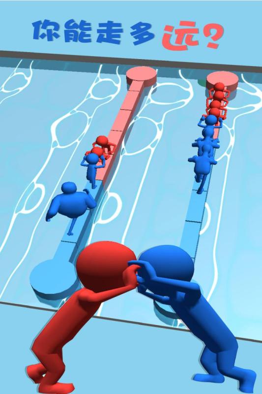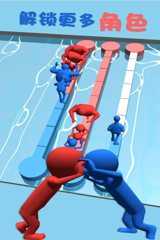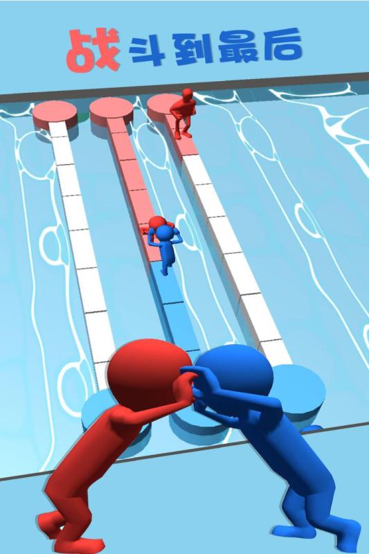 红蓝推手是一款3D小人进行竞赛的闯关手游,游戏内红蓝两房讲在水桥上决一胜负,各方都派出自己的选手,趁着对方不稳定的时候抓住机会将对手推入水中以此来获得胜利。