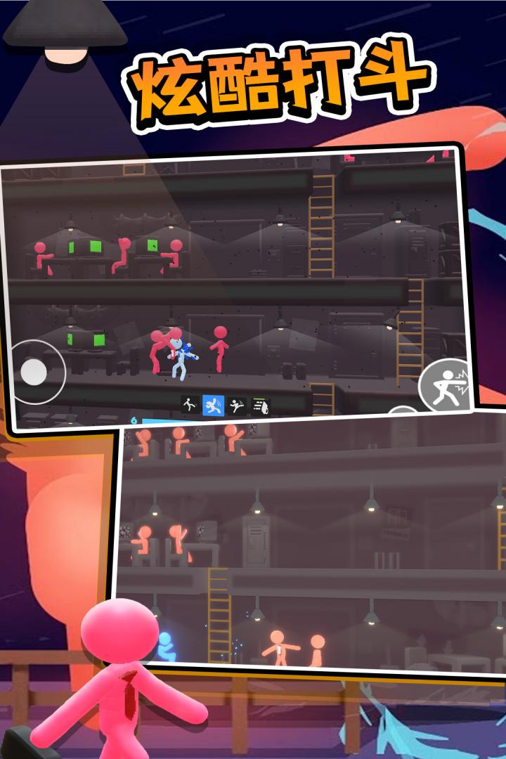 1、简单便捷的火柴人战斗玩法,让你在游戏中可以体验到不同火柴人战斗的快感。