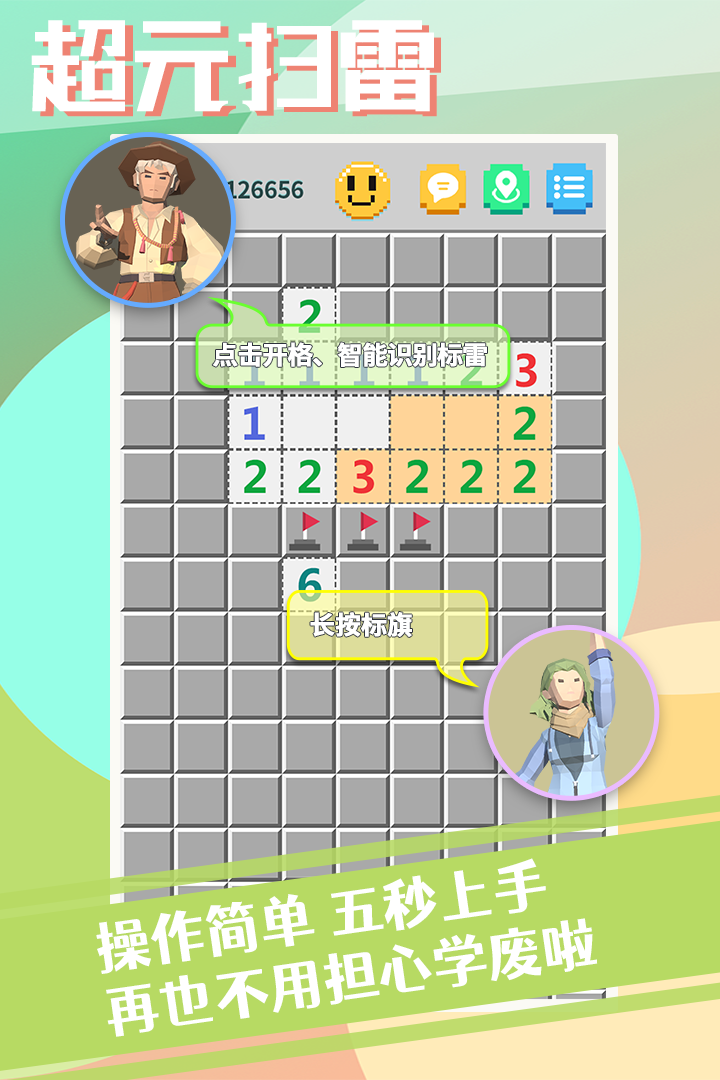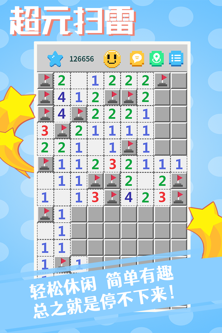 经典扫雷,全新玩法,让你停不下来的超休闲小游戏——《超元扫雷》来袭! 这是一款能自娱自乐也能和朋友一起玩、能体验经典也能花里胡哨、能轻松娱乐也能欲罢不能的扫雷!
