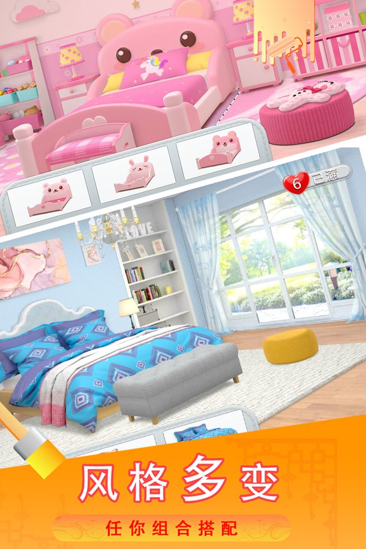 《糖宝消消乐》是一款非常好玩的以消除为基础的模拟建造养成类手游。游戏中,玩家可根据自己的喜好对自己的房屋进行建造和设计,利用自己的审美和想法设计出梦想中漂亮的房子!