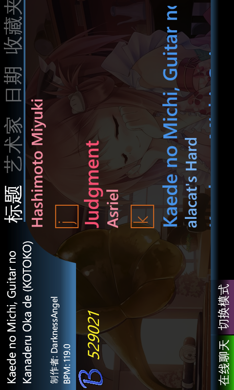 界面大幅改进,添加按钮音效和打击震动,对搜索功能进行完善,支持搜索艺术家。 优化了打击音效,偏移设置。修复难度显示问题(需重新下载)五首新歌
