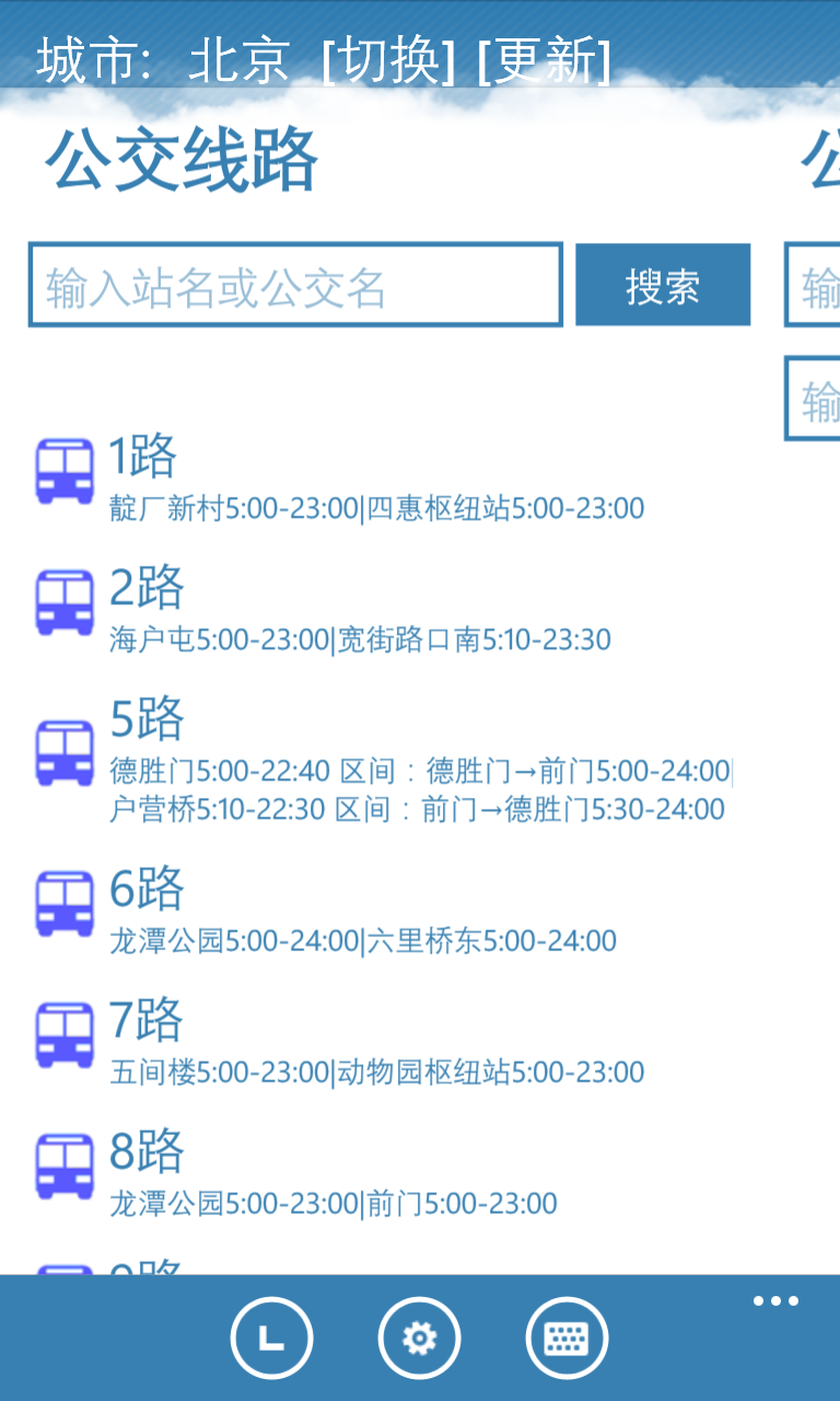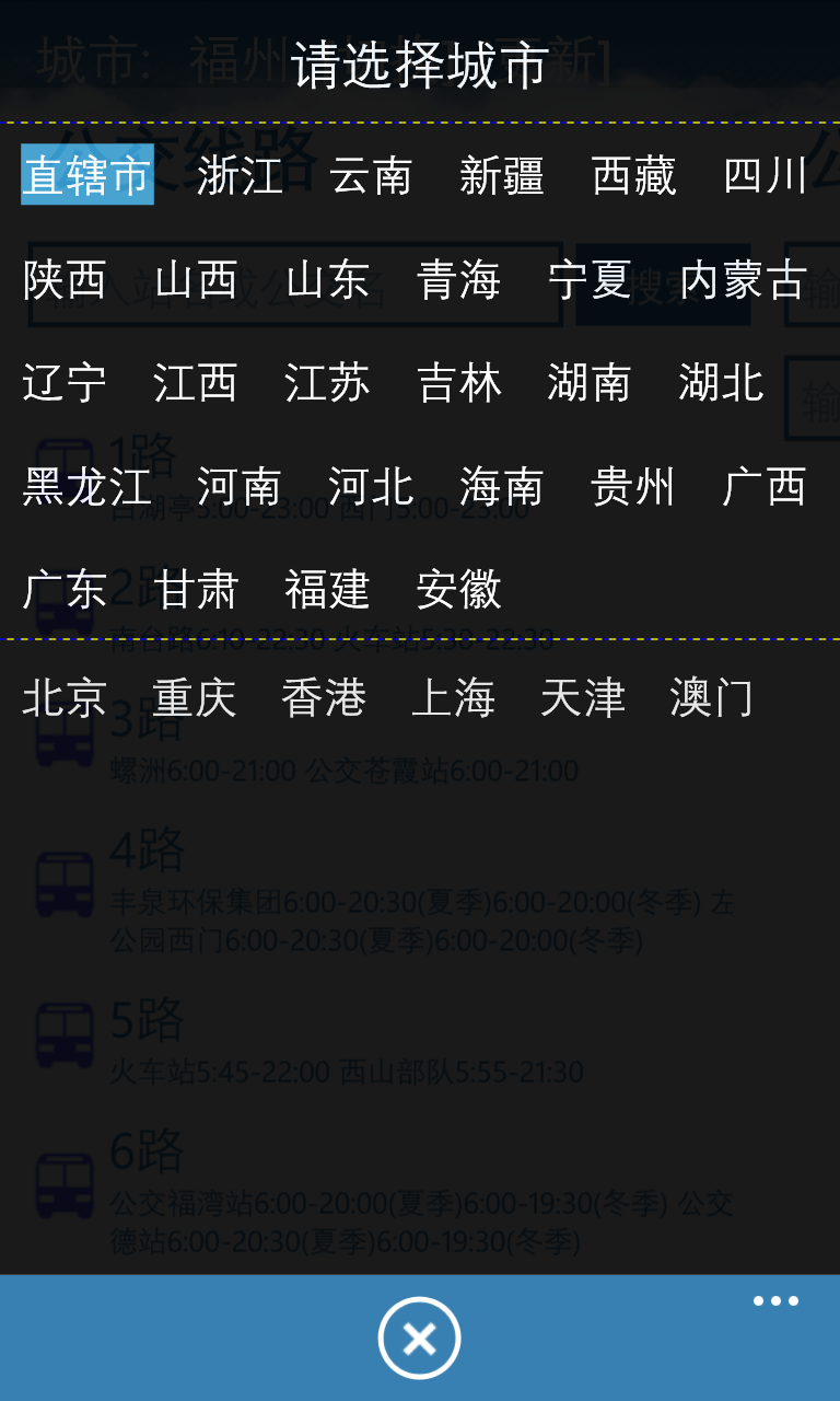 这是一款离线公交路线查询软件,在查询的时候它将不会耗费您任何流量,目前支持全国441个城市的公交路线查询,本次更新了所有城市的公交路线,以及新增了一个在线更新数据的功能.另外本人也在着手开发部分城市的实时公交查询的功能,由于最近比较忙所以延期上线,我的目标是打造windows phone上最好的公交路线查询软件,最近我收到很多反馈,首先感谢你们这么热心的反馈.很多建议我都会在未来的版本中加入,由于时间有限所以没办法一下子加入,希望大家不要介意.如果您有任何意见或者建议欢迎反馈给我,我会虚心接受!