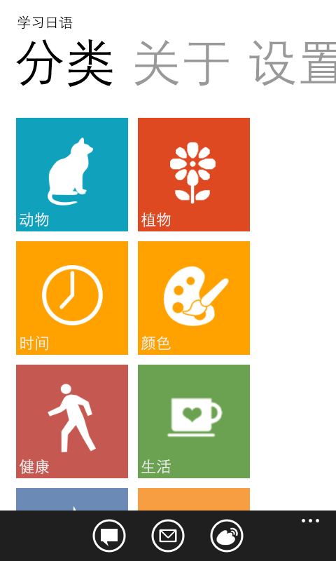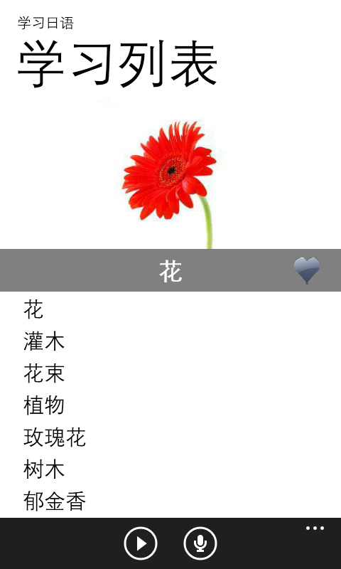 《学习日语》(Learn Japanese)提供了大量的单词库,而且还包含语音和图片,分成24个类别,包括: