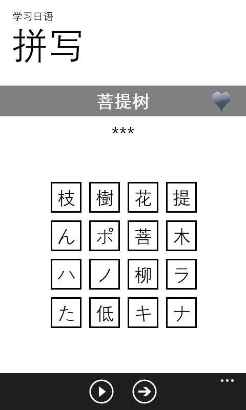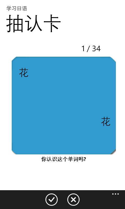 它提供一种休闲和交互的方式来学习日语,它有8种学习模式提供选择:学习列表,抽认卡,听,含义,记忆,拼写,单词,回顾。