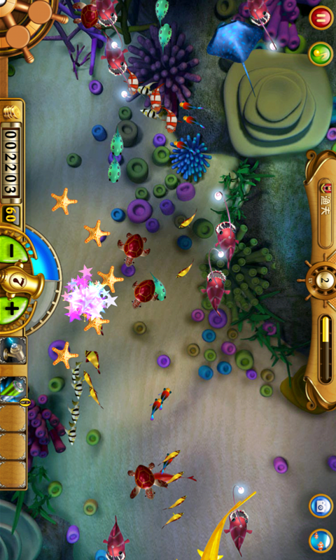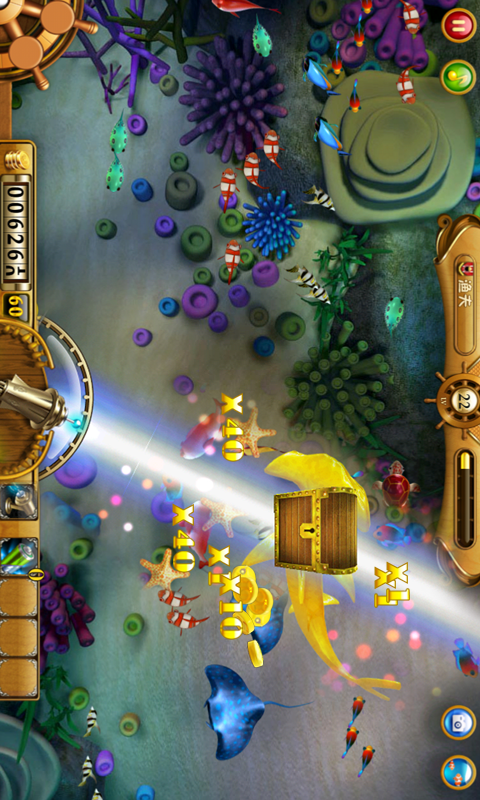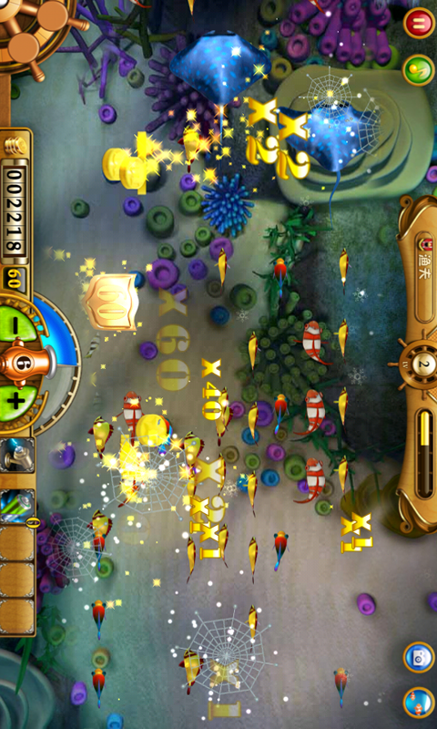 *前所未有的独创攻击, 多级渔网,超级激光炮,闪电炮, 让捕捉的鱼数加倍, 金币加倍。