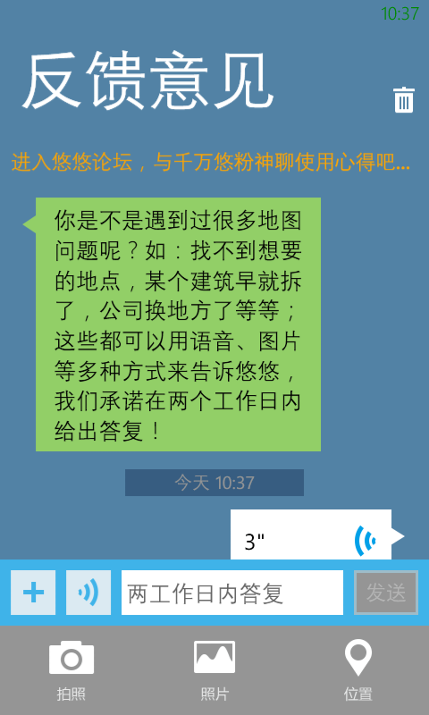 3、如果您对悠悠满意就推荐给朋友吧;如果您遇到了问题请用“反馈意见”功能告诉我们,我们会在2个工作日内答复。