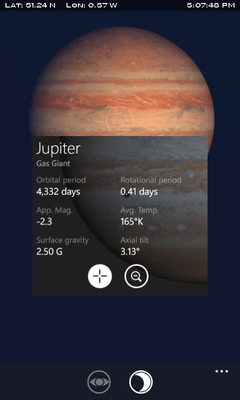 - 只需敲击屏幕中天空的某部分,就可获得所看到天体的有关情况,包括其距离和亮度。