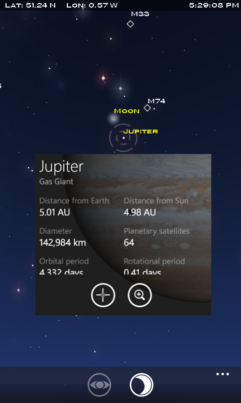需作的所有工作只是将你的电器指向太空,该星图将准确地指出你正在观看的天体。