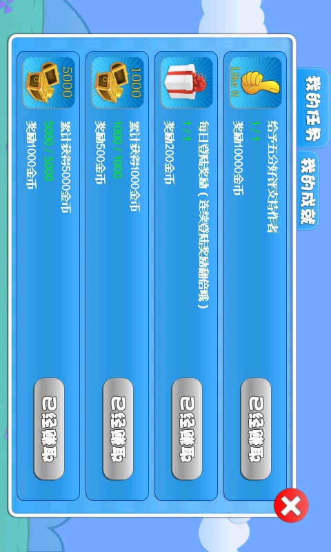 3.超过20个游戏任务,完成后有大量的金币奖励;